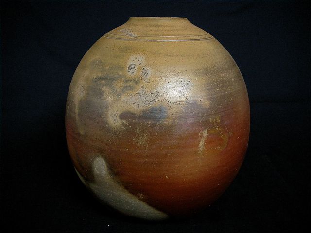 卵型の サンギリ 焼きの 壺です。 色々な 景色が 楽しめます。