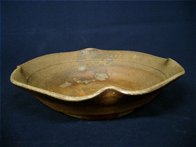 ト印 人間国宝 金重 陶陽先生の輪花鉢です。気品溢れる造型に土味の良さ緋襷と胡麻が楽しめる作品です。