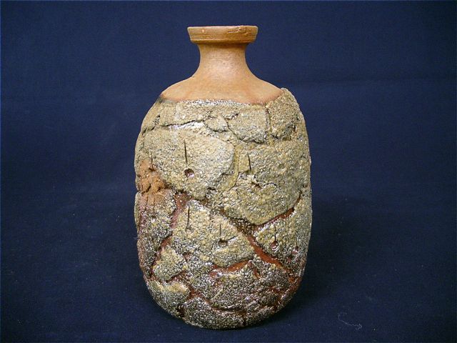 拾六先生独特の乱張技法の徳利型の花入です。どこから見ても深い景色は魅力的です。