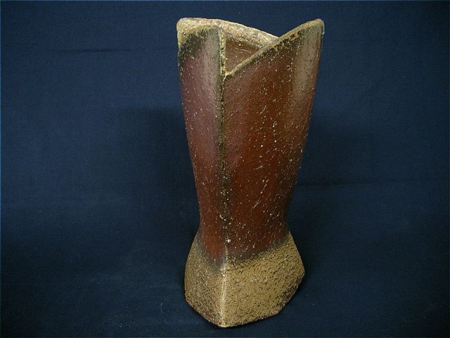 備前土をメインに造られた三角花器です。大胆かつ計算された形はさすがです。