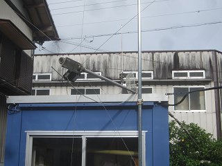 台風8号がやってくるらしい。全国各地に大雨を降らせ被害や犠牲者が出ている。まだ鹿児島辺りに居るからと言って安心できない。 ところが当地静岡市清水区は思いのほか静か。雨は降るが長く続かず山切川の水量も普段と変わらない。今朝の天気予報では赤丸の暴風雨圏が無くなっている。 それでもテレビや新聞があおるからカミサンがが朝から唸っている。先週末に工房マストへ上げたR7000がノンステーのため、危ないから近所迷惑と朝6時頃退避勧告があった。 確かにステーはとって無いが、周りに建物があり風は遮られるし、マストも含めてしなるから大丈夫と説明しても理解できないらしい。それで朝から工房の屋根に上がり脚立に乗りR7000のUボルトを緩めた。朝からゴリゴリやっている方がよっぽど近所迷惑と思うのだが・・・。 写真はマストから外してユニットハウスの工房屋根に寝かせたR7000。幸か不幸か共振点にズレがあるので、この機会に長さを調整してチューニングを取ろうと思っている。また次に上げるときは、デベロープで3方向のステーを取り、マストも2方向でパイプステーを取る予定。・・・台風8号は11日未明に洋上を通過し関東へ抜けていた。 |