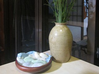 今日10月6日は中秋の名月。所用があり午後から藤枝の姉宅を往復して戻ると17時近くなり、辺りが何となく薄暗い。そこでカミサンから「ススキを採って来て!」と命令もヘルプともとれる言葉が発せられた。早々に裏のミカン畑の脇にあるススキを切りに向かったが、先日の草刈り後でまともにに穂を出しているススキが少ない。連日害獣被害の巡回をするルートだが、雰囲気は見ていても詳細には目が届いていなかった。何とか形になりそうなのを数本切って持ち帰る。写真は縁側の仮設テーブルにカミサンが生けたススキと萩やその他・・・。そして恒例の庵昇堂のへそ餅とチイチイ餅を備える。ただ今夜は曇天で全く月が見えないのが寂しい。早々に雨戸を締め、ススキと餅を眺めながら縁側から、雲の上のお月さんを頭の中に描く。まったく変わり映えのない光景だが、自然とそうなってしまうのは年のせいか…。