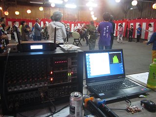 関係PA機材を軽トラに積み、8時過ぎに雨天会場の自治会館倉庫へ赴く。片付けが終り会長・副会長、社会部・担当区組長が準備を進めていた。早々に放送席の机を用意し機材を運び込む。SPは北側の棚の上に、ミキサーやPC群は机の上に設置。平行して中島電気さんが提灯や電気関係の設営を行い、10時過ぎには形になった。  一旦帰宅し、昼食などで時間が経過。14時半頃再び赴き最後の準備と確認。「放送席」「受付」や「女性用」などの案内を、自治会のPC・プリンタで作成し貼り付ける。ワイワイ倶楽部やキッチンカー・店舗等の設営も順調に進んだ。忘れていることも多く苦笑しながらも後方支援する。  17時、庵子会の太鼓で始まり、山切氏子総代、山切自治会長の挨拶が行われ、地元選出の衆院議員と市議の挨拶が続いた。そして17時15分頃からいよいよ豊年踊りが始まった。終盤にもう1人の衆院議員も到着され挨拶。19時45分頃までに踊りは終了し、フィナーレで庵子会の太鼓が響き、最後は草ヶ谷自治会長の挨拶と3本締めで20時過ぎ終焉となった。予定曲を一巡した後はリクエストを募りながら、時間とにらめっこしてのアドリブ作業になったが、予定時間に収めることが出来た。進行役のSさんには感謝だ。雨にも関わらず多くの皆さんに駆け付けて頂き嬉しい。スタッフの皆さんもお疲れ様でした。20時半、機材をカミサンの軽ワゴンへ積み帰路に就く。