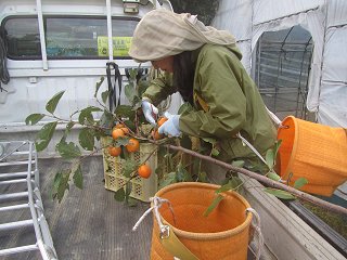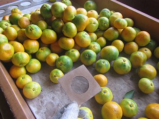 ゆら早生は未だ屋敷の園地に生っている。11月初旬の出荷割り当てに合わせて収穫・選果する。それが終ると通常早生の収穫が始まる。