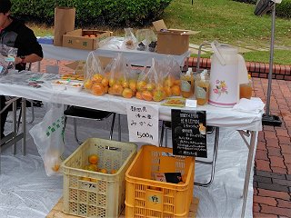 友人から学園祭のバザーに出店するのでと、ミカンの提供を依頼されていた。選果落ちで十分とのことで、落としたゆら早生を中心に用意する。屋敷南でJA出荷予定の無い木に実るルーツ不明の早生が色付いているため、不足分を23日収穫した。高接ぎの台木にした日南から出た枝に実った果もある。カミサンは収穫後、白く付着した農薬をタオルで拭き取る念の入れ様…JA出荷じゃそこまでやらないのに。都合80kg超、コンテナに種類毎仕分け、種類が分かる様に紙札を用意した。バザーは25・26日の2日間山梨で行われ、前日24日晩引き取られて行った。果たしてどうなったか…。26日深夜に写真が届いた…雨も降らず完売だって!。