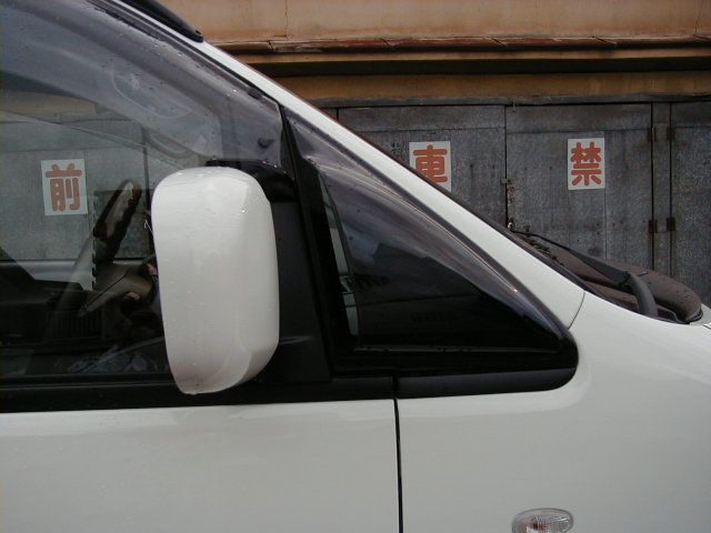 ミラーバイザー 4WD・SWATのミラーバイザーです。 見た目も空力が良くなりそうで カッコも良く 気に入っている アイテムの一つです。 このパーツの凄さを 感じるのは 高速道路です。 風切音が 相当低減します。1BOX車ゆえ どうしても大きなミラーが ついているので 風切音は 諦めがちですが このパーツで高速クルーズが とても楽に なりますよ。 最初は 三角窓からの 視界が心配だったのですが スモークレンズとは言え 視界にも まったく 問題は ありませんでした。取り付けですが Rの急な部分が なかなか付きづらい ですね。 両面テープなので 一発勝負ですが 気合をいれて やらないと バカバカに なっちゃうかもしれません。ちなみに MONOちゃんは 右側が ちょっとヤバイ! (^^;; |