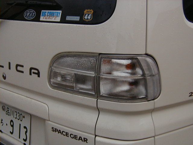 クリアテールレンズ これは BIGRUN相模原で フロント・サイドクリアレンズと 一緒に 3点セットで購入 しました。テールレンズは 「コンビ」「スモーク」「クリア」 と三種類あるので カスタム派は 非常に 悩める部分ですが やっぱり 統一感で クリアに決定しました。 昼間は 単調に 見えるかもしれませんが ウインカーの発色が とても綺麗です。また 夜間走行時は 他の スペースギアとは 明らかに違う雰囲気を かもし出すので 最高ですね。 夜間は テールゲートの部分は 点灯しないのですが そのせいかな・・・・(最初は ちょっと せこいと 思ったんですが) それから ロットによっては シールがあまいのが ありそうですね。 MONOちゃんのは 左側部分のみテールレンズ内に 水が溜まってしまいました もちろん 無償で交換してくれましたが・・・・ 圧力の強い スチーム洗車は ちょとヤバイかも・・・ |