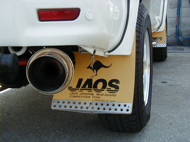 JAOSのマッドフラップも 超お気に入りの アイテムのひとつです。 女房殿の RVRにも装着しています。 マッドフラップの定番ですよね。実はこのJAOS製 マッドガードは 近所の「オートテック」で 購入したものなんです。何も知らなかったもので・・・ ガソリン車のスペギは ノーマルマフラーの状態でも マッドフラップとマフラーが 干渉してしまうんです。 つまり加工しなくては 取り付けられないって事なんですね。自分で最初は やろうと思っていたのですが 足廻りの改造の時 一緒に「BIGRUN相模原」の前田店長に取り付けて頂きました。「基本的に持ち込み商品の取り付けは やらないんだけどなぁ・・・」と言いながら 笑顔で 取り付け作業をして下さいました。 やっぱり プロの仕事はきれいですねぇ! 大口径のマフラー出口を 等ピッチで きれいに逃げて加工してあります。自分の仕事柄 手先は器用な方だと 思っていますが これだけの仕上がりは 絶対素人では 無理ですね! 本末転倒なんですが マッドフラップが汚れるのが嫌で カーシャンプーなどで ゴシゴシ洗っていたら JAOSの印刷が かなり薄くなってしまいました。 気をつけましょう。! フロントのマッドフラップには 取り付け用金属プレートを付けてません。2インチアップとは言え どうしても タイヤとマッドフラップが フロントタイヤを 目一杯切った時 当たってしまうからなんです。取り付け用ビスも 丸頭(ナベ頭)に 交換して頂いて タイヤのショルダー部分に |