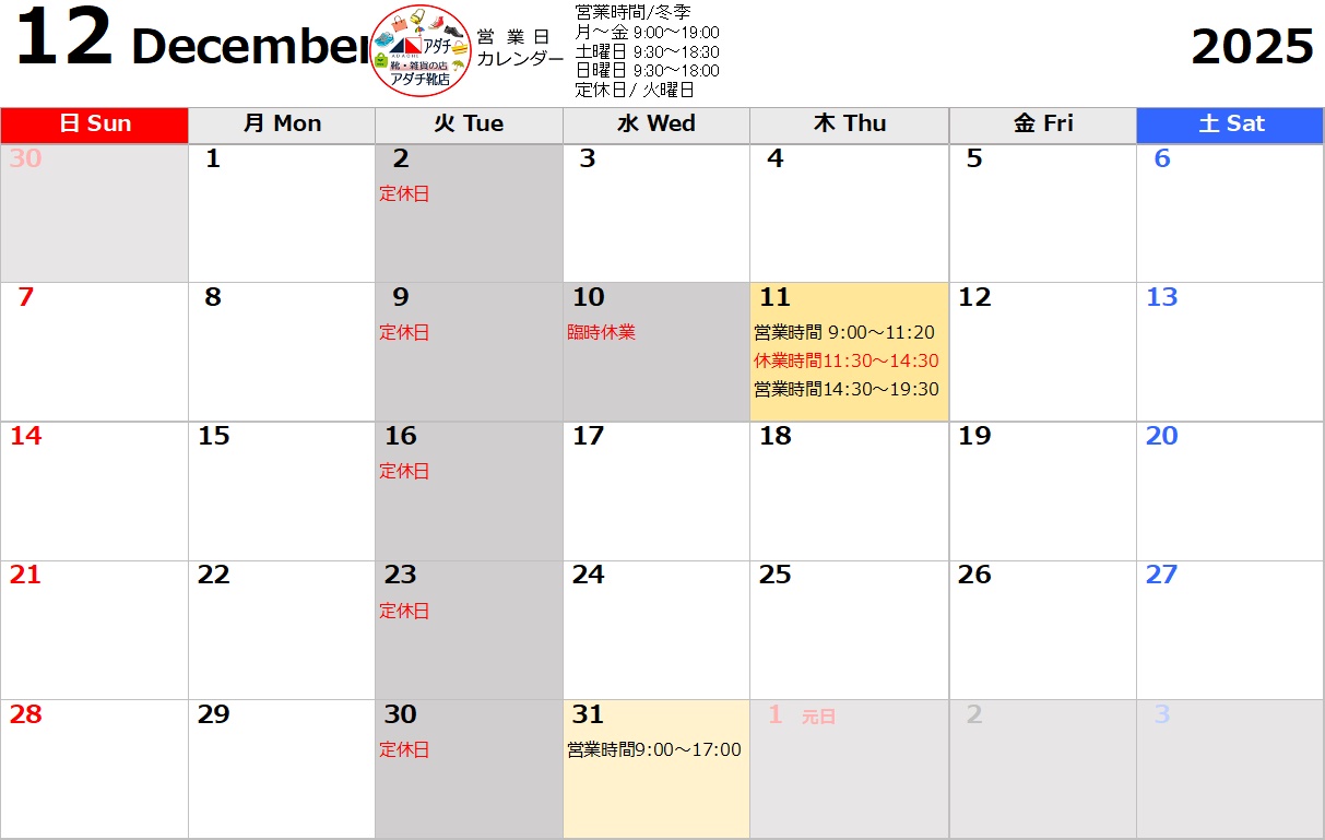 【営業カレンダー】・・クリック・タップで大きく表示