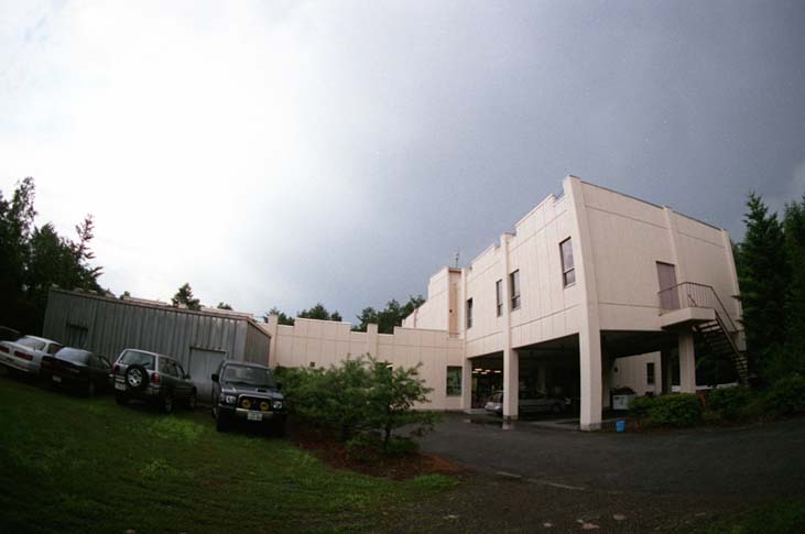 左側の建物(駐車している車の後ろ)には、今までシュミット望遠鏡で撮影された乾板がつまっているラシイ。