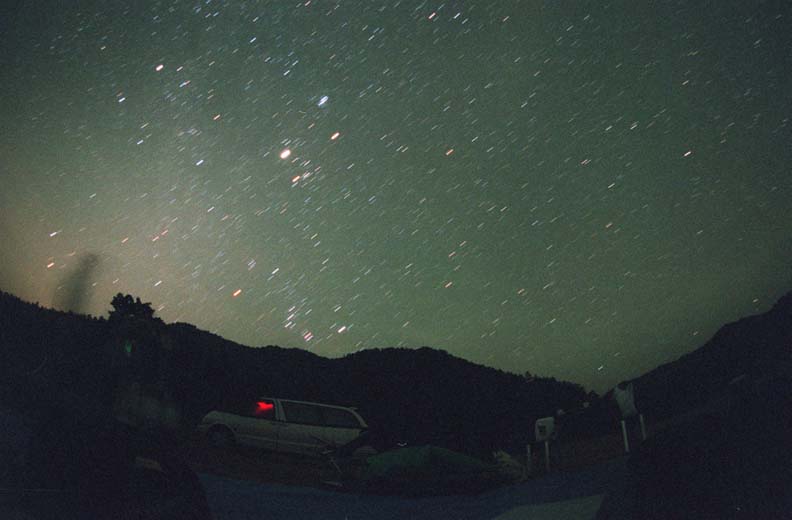 ところで、利賀村の空とどっちが暗い? うーん、有峰が暗そう。 利賀のページと比べてもよくわからないんですが、実はフィルムスキャナが違う。今回はコダックを使いました。色調の違いもそのためか? コダックを使ったのは、階調がニコンよりも良さそうだからです。ニコンは星の階調が飛んでしまっている。
