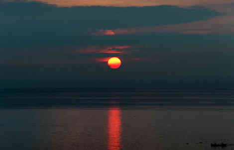 撮影時間・絞り・シャッター時間不明 石川県七尾市江泊 雲の切れ間からのぞいた朝日。 北アルプスの山並みよりもずっと北側から上ってきました。 夏の月は冬の太陽のように低く上り、冬の月は夏の太陽のように高く上ります。ちょうど太陽と逆ですね。 |