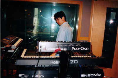 Ryuuji brought his five keyboards to build the castle in the studio.