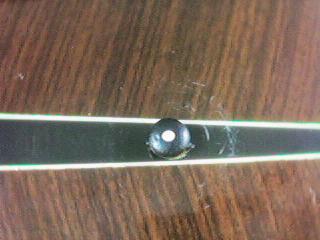 ブリッジピンの穴と穴の間にも、よくある「割れ」が入っていました。