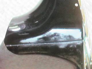 左がリペア前、右がリペア後です。サイドを貼りなおしてバック全体の縮れてとびだした細かな木材を取り除いて頂きました。