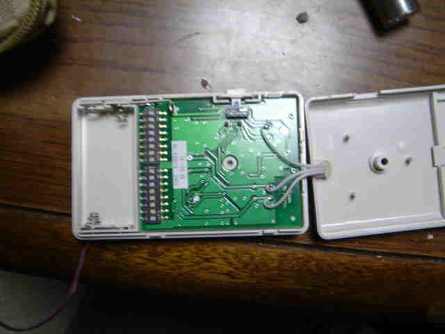 | こういった作業は、改造と呼ぶほどのこともないですが。。。。。 リモコン(電波式なのでどこでも置けます)を開けて、スイッチの部分を探してコードを半田付け。HDD用のリボンケーブルをバラして3本だけ使ってます。 |