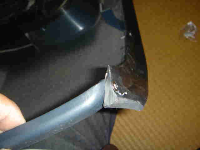 | 端やコーナー部分は付属のネジで止めてます。3mm程度のドリルで穴を開けて。皿ネジですが、スポイラーは柔らかいので、ほんとうは大きめのワッシャーなどをかました方がいいかも。。。。 | |