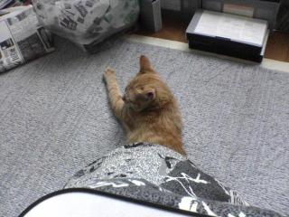 暖かくなったので、流石に全身こたつはキツイ! ゆえにこんなスタイルでお昼寝中です(笑) |