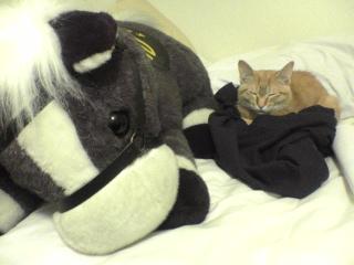 もくちゃんにもお友達が出来ました♪ って馬(オグリ)の方が先住人ですけど・・・。 |