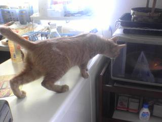 この頃はテレビの上でくつろぐのがお気に♪ 別にいいけど、掃除が大変なのよね。 |