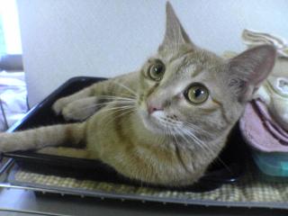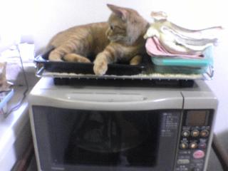 最近、レンジでくつろぐ事を憶えてしまいました。 | 「あの〜、邪魔なんですけど・・・。」 「なんか文句あるんか?」 |