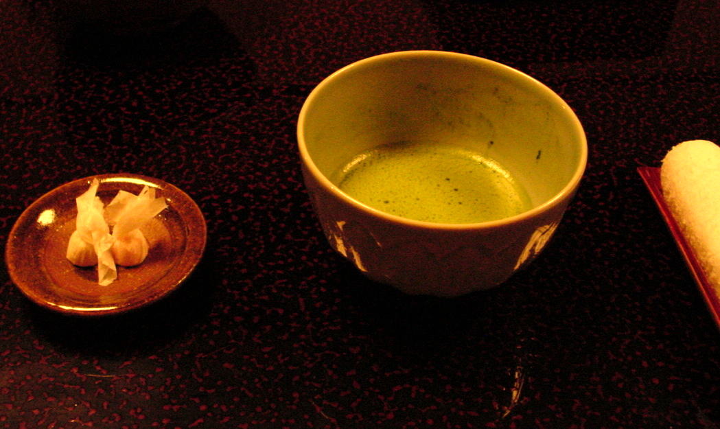 二人でワイワイしていると、仲居さんがお抹茶を持ってきてくれた。