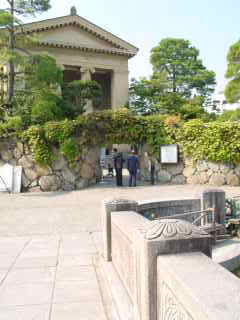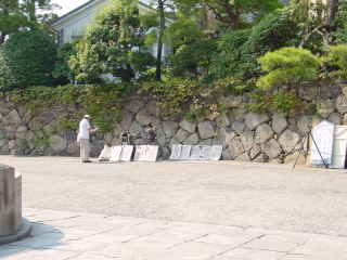 美術館に近づくと、石垣の所で、