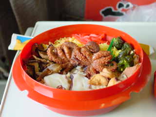 ここから乗る新幹線の中で食べる駅弁を選択中。