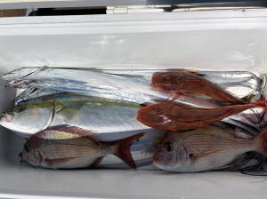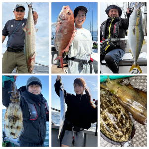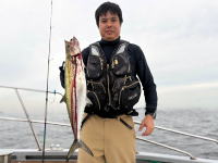 お初の御来船H様御一行チャーター便!…朝方風強い予報で出船遅らせて…GO! 色々な魚狙って見たいとのご希望で…幹事さんにサポート頂き…仕掛け・ルアーで用意してくれて… ベイトのレンタルタックル流用で可能と思われる釣り物の…ショットガンアジ・太刀魚・鯛ラバで狙いました! 前半戦ショットガンアジ…出船時まだ風残り風裏ポイント狙って嬉しいゲストのカマス混じりで…ぽちぽち! 中盤戦太刀魚…少し風落ちてきてポイントへ…浅場で細切れ反応ぶっつけ×2でポチンカ! サイズ狙って深場にも向けましたが…こちらは…時合いもはずしているようで…型見ず。 後半戦鯛ラバ…マゴチ・ホウボウ・太刀魚・エソ・サバフグ・サメ等…釣れてきましたが…本命は… 駆け足でしたが…幹事さんのスペシャルサポートで…それぞれ何かしら釣って頂けました。 参加の皆様…有り難う御座いました。…また機会が御座いましたら…宜しお願い致します。…m(_ _)m ![]() ![]() ![]() |