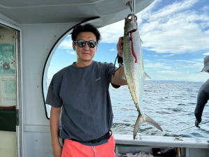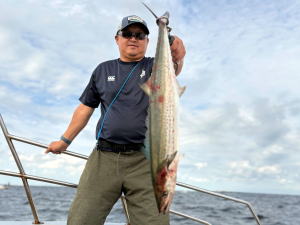 荒天中止続いちゃって…予約乗合ご常連さんお二人にてサワラ狙いで久々の出船! 前日スパーク!(・o・)したとの事で期待しましたが…サワラあるある?…本日…昨日の勢いは無い感じで…(-_-;) 後半心配された雨にもつかまっちゃって…本命3ヒットしましたが…バレちゃって…本命1本ゲット型見て… 他太刀魚・サバ・アジはコンスタントに釣れて…20ほどゲット!でお土は確保出来ました! 参加のお二人さん…何時も有り難う御座います。…m(_ _)m ![]() ![]() 湾内キャストでサワラの模様が出てきましたね!暑い日が続いてますが… 台風時化後…流石に秋の釣り物へ…!?…(^^;)… サワラ好きの皆さん!お早めの御来船お待ちしております。m(_ _)m |
