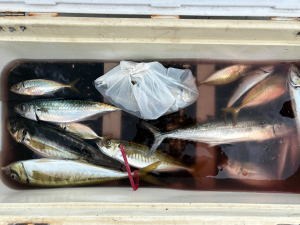 午前便でショットガンアジ&シーバスで出船しました! アジのお土産は確保したいとの事で…皆さん初挑戦との事でレクチャーから始めて… 全般アタリ遠く…転戦転戦…落とし方に慣れた方から…ポチポチヒット!なんとか25ゲット位! 皆さん同じサビキのサバ皮使ってたかな?次回水色・食い気・魚サイズに合わせられるよう… スキン系や針サイズがもうちょい小さめも…有ると良いと思います。 シーバスは…ショットガンサビキのジグには掛かってこない状況で…合間に要所でキャストで狙いましたが… キャストで5ヒットほどしましたが…全バレてしまい…(T_T) 参加の皆様…お疲れ様でした。有り難う御座いました。…m(_ _)m |