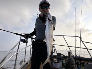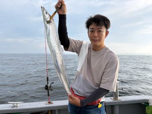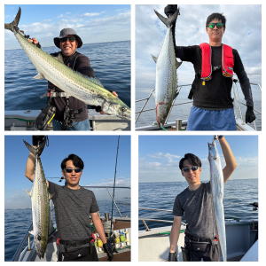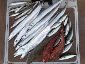 予約乗合K様御一行3名様でサワラ狙いで出船! 前日よりいい加減?良い加減!?涼しい感じの陽気で期待して出船! 朝一帰り間際に単発跳ね見られましたが…あと少し良い所流して差し上げられてないのか…!? 近所の僚船では型見れている状況でしたが…当船はスッパリ切れ&バレで…残念ながら本命型見ず。 太刀魚のお土産だけで…傷心の帰港となってしましました。参加のK様御一行の皆様…有り難う御座いました。 |