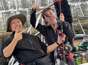 男気宣言で言い出しっぺ!になってくれたYさん!&ムリクリ時間作って遊びに来てくれた 謎のマスクマン!のお二人で…南下していくと中途半端に風有りましたが…キハダ狙いでGO! 序盤・終盤と結構チャンス!は作れましたが…残念ながら…モゾっとバイトのみで…ヒットまで行かず。 傷心の帰港となりました。参加のお二人さん!"和気藹々!"でやって頂き、有難う御座いました。m(_ _)m 動画はインスタ・公式LINEにて… ![]() |