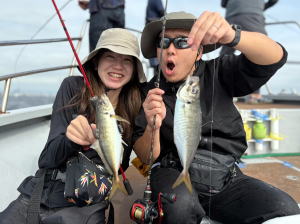 お初の御来船のK様御一行にてオールレンタルタックルにてショットガンサビキでGO! 皆さん初チャレンジとの事で…出船前にレクチャーして…近場から開始! 序盤慣れないタックル・仕掛けの扱いに苦戦のようでしたが…アクション付け方慣れてくると… カマス混じりで…コンスタントにヒット!…やってればって感じでしたが…サイズ狙いで深めへ転戦転戦… サイズは上がりましたが…連発はしない感じで…午前船なので…お時間で終了。 感じのKさん&参加の皆様…また機会が御座いましたら…遊びに来て下さい。お待ちしております。…m(_ _)m ![]() ![]() ![]() ![]() |