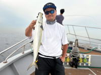 予約乗合サワラ&太刀魚で出船! 前半・後半戦サワラ…序盤戦広範囲で元気良く跳ねる状況で…期待して開始!…(・o・) 船べりでネットで救えそうな距離で…おはよう!って跳ねますがサゴシゲット!するも…潮止まりも重なり… その後続かず…残念…(-_-;)…お題目で中盤は…太刀魚狙いへ… 中盤戦太刀魚…浅場で小さめの反応ですが捉えるとジグ・ワーム・ブレード系それぞれコンスタントにヒット! 終盤戦…再度サワラ狙ってみましたが早朝と違い…水温上がって水色悪化!?…単発跳ねは確認出来るものの… 太刀魚追加のみで…終了となりました。 本命サワラちゃん…残念でしたが…参加のお三方…和気藹々でやって頂き有り難う御座いました。…m(_ _)m ![]() ![]() ![]() 昨日サンマ・本日今季お初の梨食べました!今週末からそろそろ涼しくなり…秋シーズン迎えそうですね! 18日先日講習受講した特定免許受領の為、お休みさせて頂きます。…m(_ _)m |