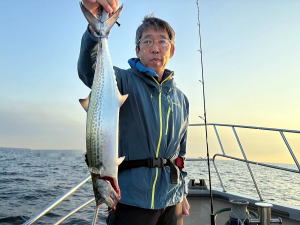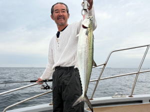 | 予約乗合K様御一行3名様でサワラ狙いで出船! 前日よりいい加減?良い加減!?涼しい感じの陽気で期待して出船! 朝一帰り間際に単発跳ね見られましたが…あと少し良い所流して差し上げられてないのか…!? 近所の僚船では型見れている状況でしたが…当船はスッパリ切れ&バレで…残念ながら本命型見ず。 太刀魚のお土産だけで…傷心の帰港となってしましました。参加のK様御一行の皆様…有り難う御座いました。 |