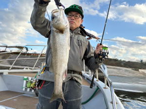 | 予約乗合サワラ午前便で男気扱いにて出船させて頂きました。有り難う御座います。…m(_ _)m 凪の気持ちの良い陽気!で頑張ってマキマキして頂き… 本命3ヒット!…ランディングネットを喰破って逃走!(-_-;)・ぽろりバレ!でお一つゲット!他太刀魚ゲット! 参加のIさん!何時も有り難う御座います。…m(_ _)m…(やはりサワラのお昼ご飯タイムあったようです!) ![]() |
