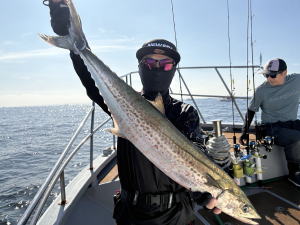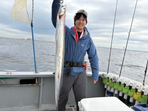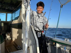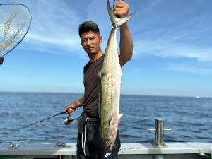 予約乗合K様御一行3名様でサワラ狙いで出船! 前日よりいい加減?良い加減!?涼しい感じの陽気で期待して出船! 朝一帰り間際に単発跳ね見られましたが…あと少し良い所流して差し上げられてないのか…!? 近所の僚船では型見れている状況でしたが…当船はスッパリ切れ&バレで…残念ながら本命型見ず。 太刀魚のお土産だけで…傷心の帰港となってしましました。参加のK様御一行の皆様…有り難う御座いました。 |