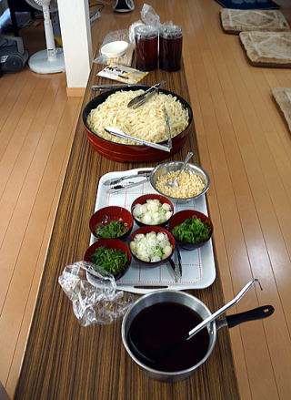 カブ隊の副長山形潔さんのお仕事、そば打ち体験をしながら、昼食を食べました。