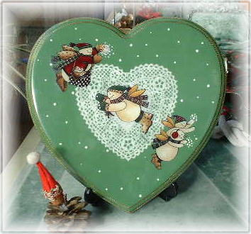 レースペーパーをはり、布製のスノーマンをミラクルコートで