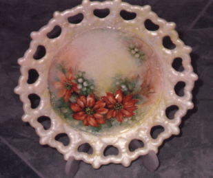 サンタ柄をタマゴにデコパージュし粘土で木も作りました 支柱にワイヤーを入れスノーテックスを付け雪が枝に積もった感じを出し、星を6箇所に(どこについているかお判りですか?) |