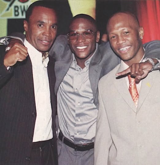 まず向かって左側が80年代のボクシング界と言うか、ボクシング界のスーパースターの1人のシュガー・レイ・レナードです。そして真ん中が現代ボクシング史上最高峰と言ってもいい(にっくき)フロイド・メイ・ウェザーです。個人的には人として好きになれませんが、父親がチャベスに負けた試合を目の前で見ながら育って来てそれらの思いを親子で胸に秘めながらずっとボクシングに接して生きて来たのかな等と思うと少しは同情する部分もあるのかも知れませんが・・・