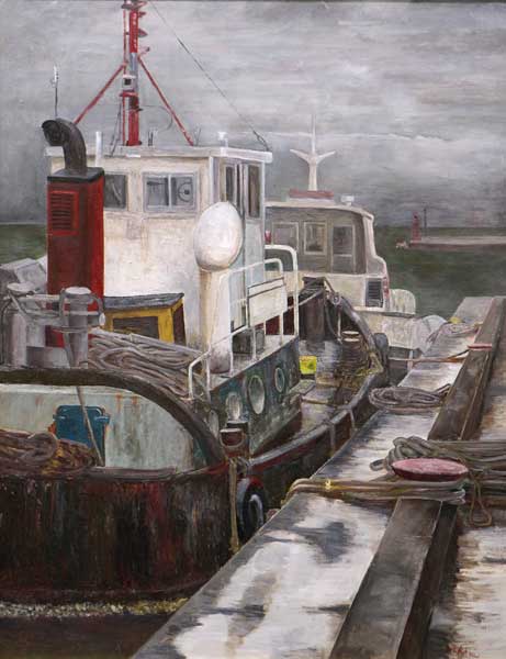 金沢八景の釣り船 | 油彩 F100 | 鈴木 英男 |