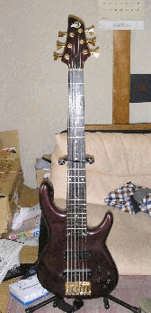大学1回生の時に買ったもの。当時、友達で某有名シンガーのサポートをしていたF君が同じベースを売りたがっていて、試奏させてもらって一発で気に入ったのだが、所持金が足りず、それを頭金にしてローンで新品を購入したもの。パッシブながらタイトでクリアーな音が特徴。