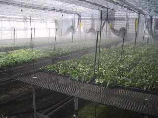 温室内で自動ミストをかけてます。