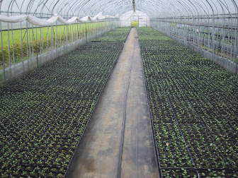 1棟のハウスには10万ポットくらい苗が入るそうです。