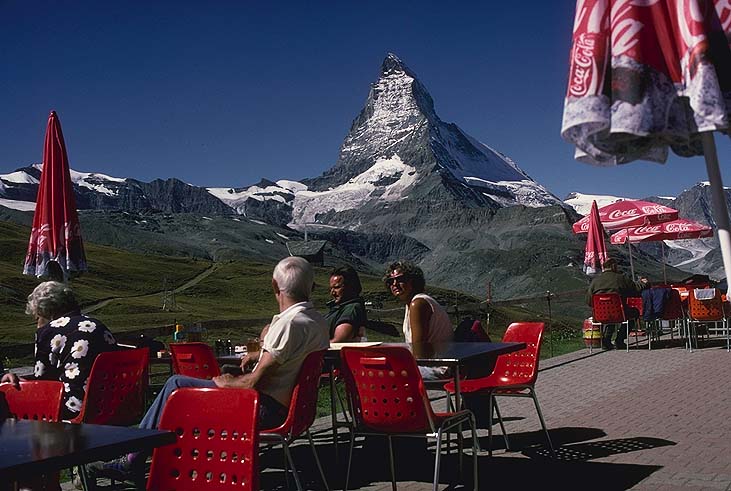 Hotel Riffelbergのテラスでのどを潤すのも良い