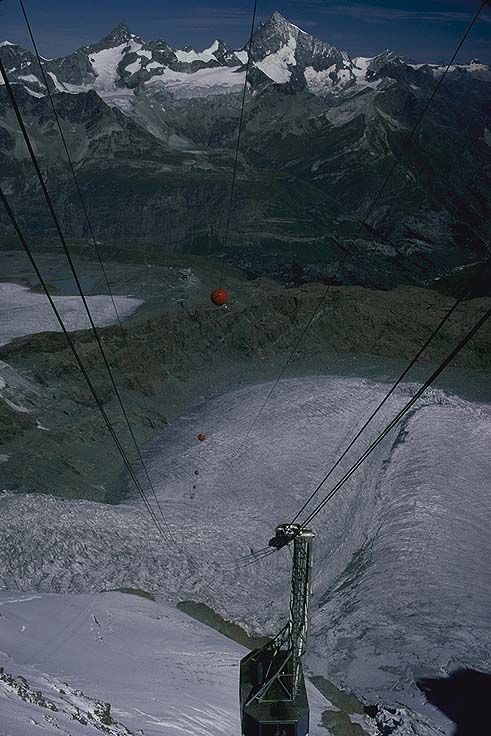 Klein Matterhornに向かう。ゴンドラを乗り継いでわずか40分ほどの間に,標高差2000m以上を登り,標高3822mに達してしまう。到着後30分ほどは頭がぼーっとしていた。