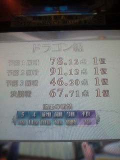 1.ドラゴン組の平均順位が一時的に3位まで上がった。3位を取った。じゃなくて、平均が3位。