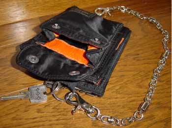 愛用のウォレットです。 タンカーの特徴であるナイロンツイルは肌触りが非常に良いですね。 チェーンをつけるリングが付いているのが嬉しい。 チェーンは確かボイコットだったかな? |
